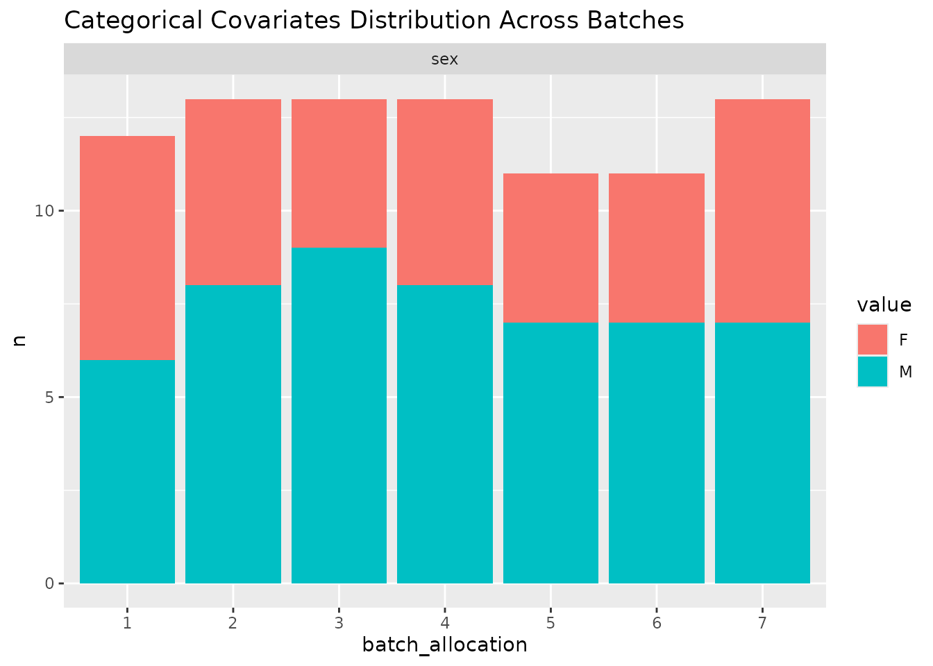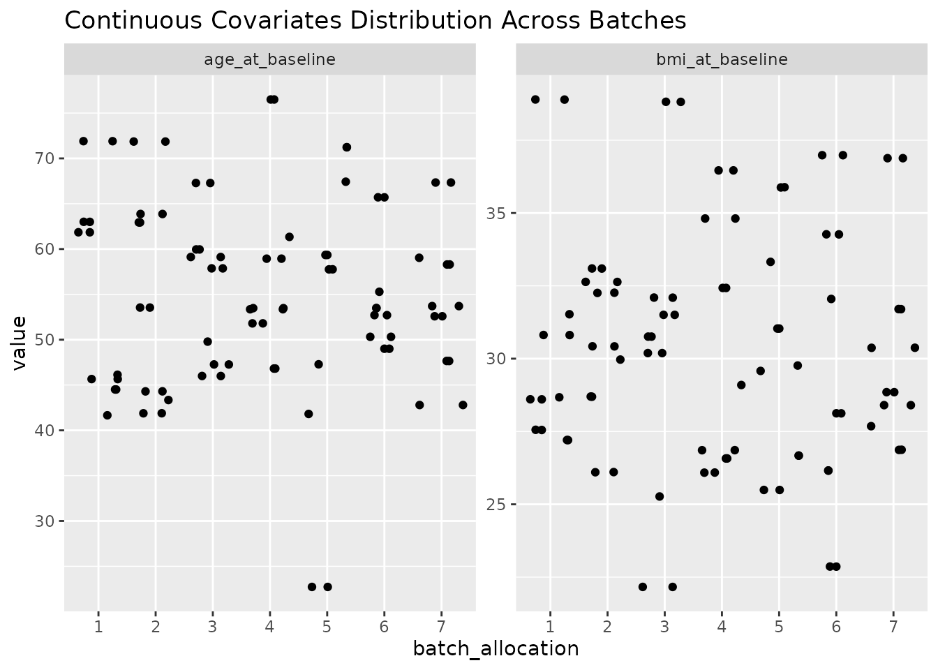 In this case, we nonetheless find a highly balanced layout. Once again, we can plot an overview of the covariates across the different batches.